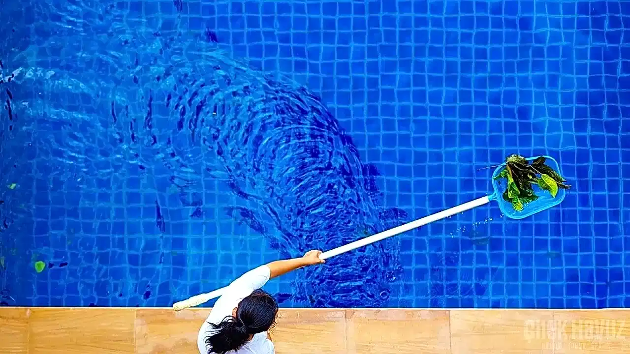Havuz bakımının ilk adımı her zaman yüzeyden başlar. Bir havuz kepçesi yardımıyla, suyun yüzeyinde yüzen yapraklar, böcekler ve diğer döküntüler toplanmalıdır. Bu işlem, kirlerin dibe çökmeden yakalanmasını sağlar.