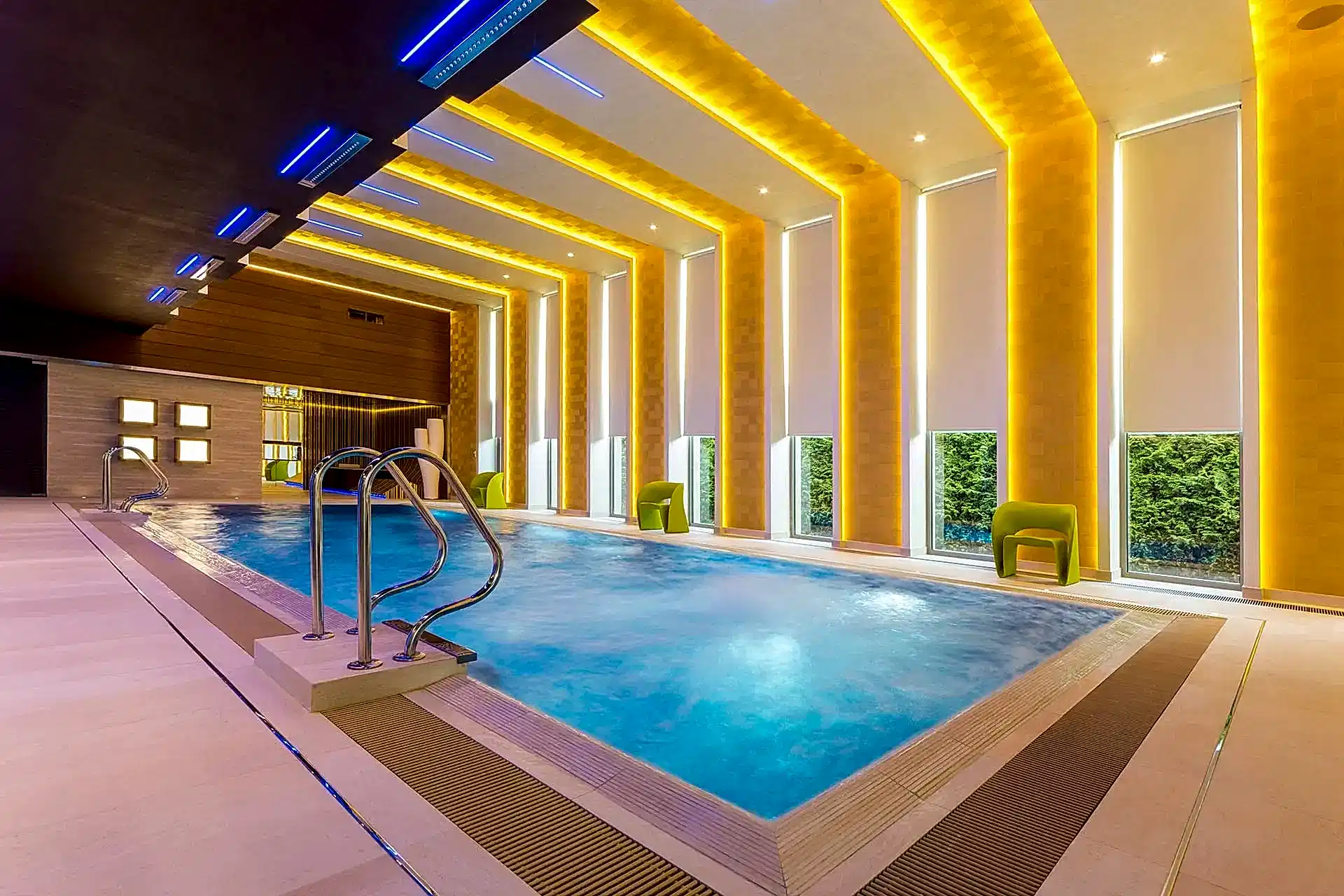 Kapalı ve ısıtmalı havuzlar, yılın her mevsiminde kesintisiz yüzme keyfi sunmasıyla öne çıkar. Genellikle cam yapılarla çevrili kış bahçesi şeklinde veya tamamen kapalı alanlarda inşa edilir. Yapım aşamasında ısıtma ve nem kontrol sistemlerinin doğru planlanması büyük önem taşır; aksi halde iç mekânda nem birikmesi ve küf oluşumu gibi sorunlarla karşılaşılabilir. Kapalı havuzlarda su sıcaklığı ve ortam sıcaklığı düzenli olarak kontrol edilir, bu da hem konfor hem de hijyen açısından avantaj sağlar. Oteller, spor merkezleri ve lüks konut projelerinde sıkça tercih edilen kapalı havuzlar, özellikle kış aylarında açık havuzlara göre daha konforlu bir kullanım sunar. İnşa ve işletme maliyeti açık havuzlara kıyasla daha yüksektir; ancak sunduğu dört mevsim kullanım olanağıyla bu maliyetin karşılığını verir.
