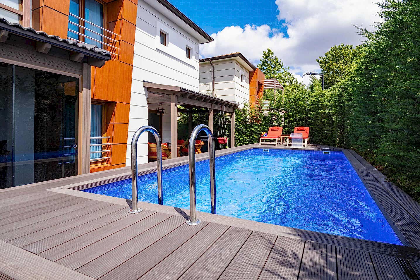 İstanbul Pendik'te yapmış olduğumuz 7x3 prefabrik yüzme havuzu yapımı süreçlerinde firmamız hafriyat alınması betonarme alt yapının oluşturulması ve çelik panellerimizin montajlarının yapılması zemine montaj edilen çelik panellerin ayaklarına beton atılması toprak dolgu yapılması ve arıtma sisteminin kurulumu tuz cihazı Pleksi şelale uygulaması ve tuz jeneratörü montajları firmamız tarafından yapılmıştır buna ek olarak havuz kenarı Kompozit deck uygulaması firmamızın ekipleri tarafından yapılmıştır havuz için ısıtma sistemi olarak havuz ısı pompası kullanılmıştır Yunus bey ve ailesine güzel günlerde kullanması dileklerimizle