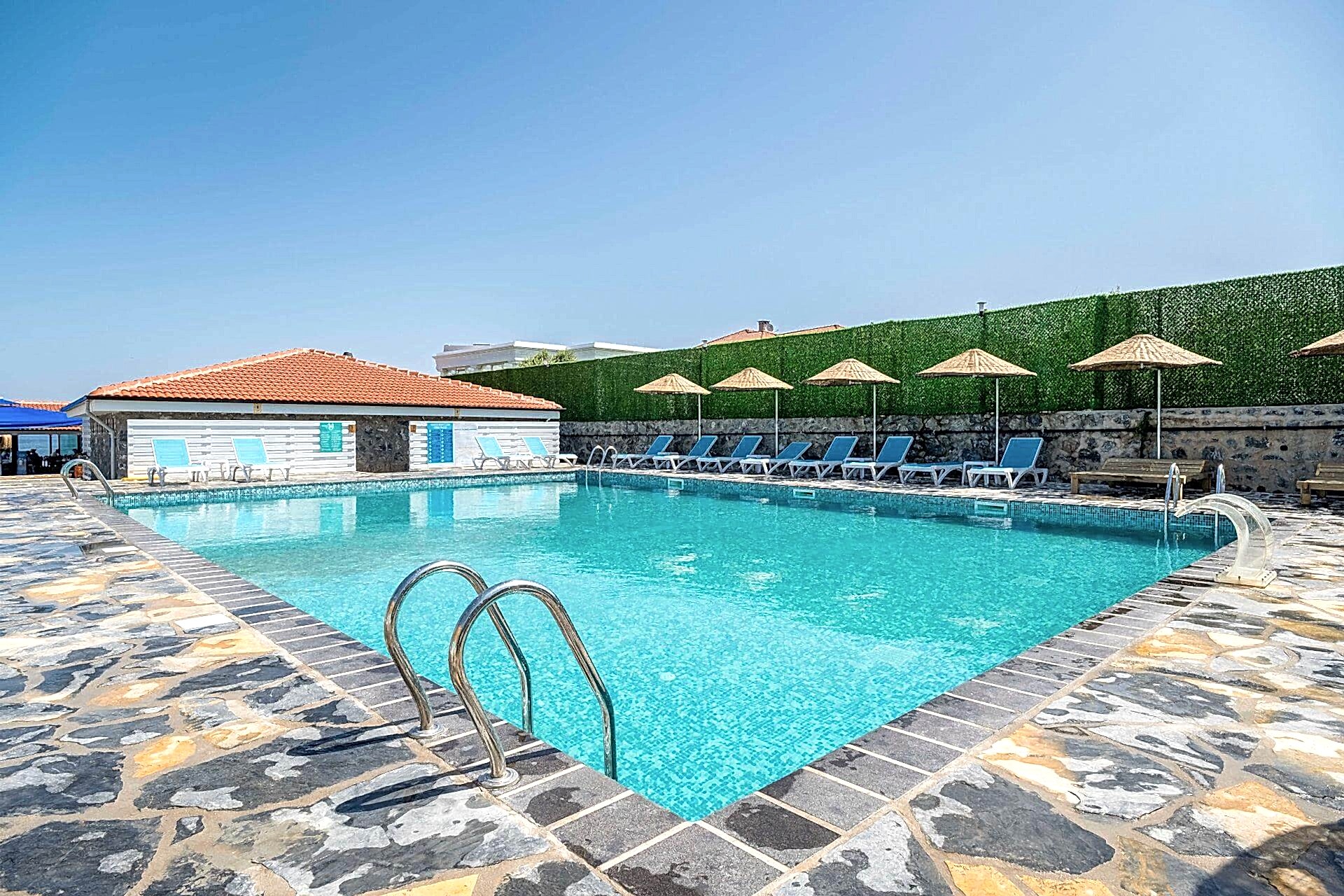 Şile'de Marin Beach oteline yapmış olduğumuz yüzme havuzu projemizde 14x7 Derinlik 1.50 ölçülerinde imalatını yapmış olduğumuz projede betonarme sistemi iş veren tarafından yapılmıştır. Geri kalan tüm işler firmamız tarafından yapılmıştır. Projede skimmerli sistem tercih edilmiştir. ve tuz cihazı kullanılmıştır ve pleksi kobra şelale kullanılmıştır. Otel sahipleri ve müşterilerine keyifli günlerde kullanılması dileklerimizle